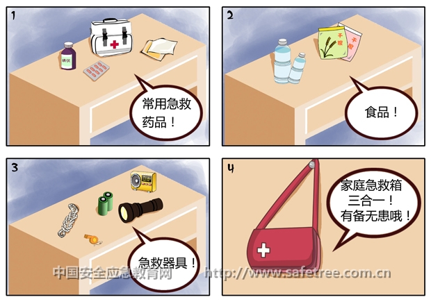 为了在遭遇灾难时能进行有效的自救、互救,每个家庭都应备有一只急救箱,其中配备一些必需的急救用品。一旦发生意外灾情,只须打开家庭急救箱,便能基本满足自救、互救的需要。